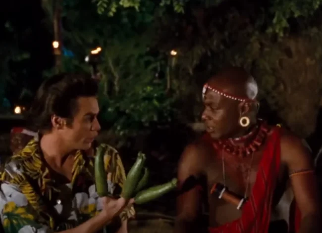 7. В одной из сцен Эйс Вентура надевает на пальцы цукини. Это личная прихоть Джима Керри. Уж очень ему хотелось сделать отсылку к Фредди Крюгеру.