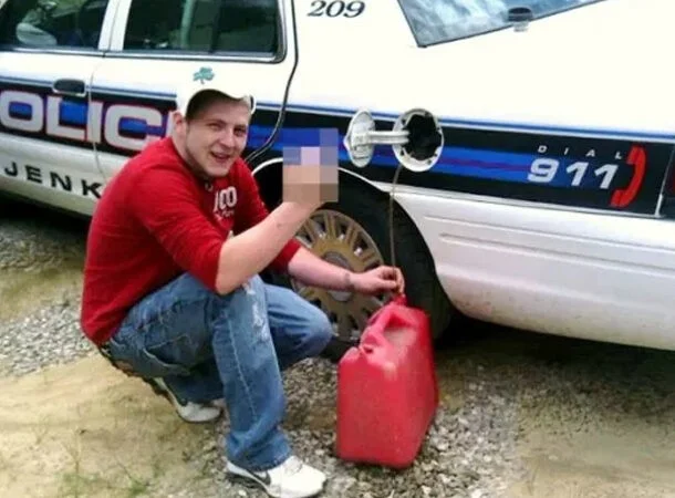 Майкл Бейкер считал, что слить бензин из полицейского автомобиля — это не только блестящая идея, но и идея, которой следует поделиться со всем миром. Его девушка сфотографировала его, позирующего возле машины, когда он сливал из нее бензин. Хвастовство — это, конечно, здорово, но он зашел слишком далеко, когда выложил фотографию в соцсети. Её увидели его друзья, родственники и местные правоохранительные органы. Наивно было полагать, что будет иначе.