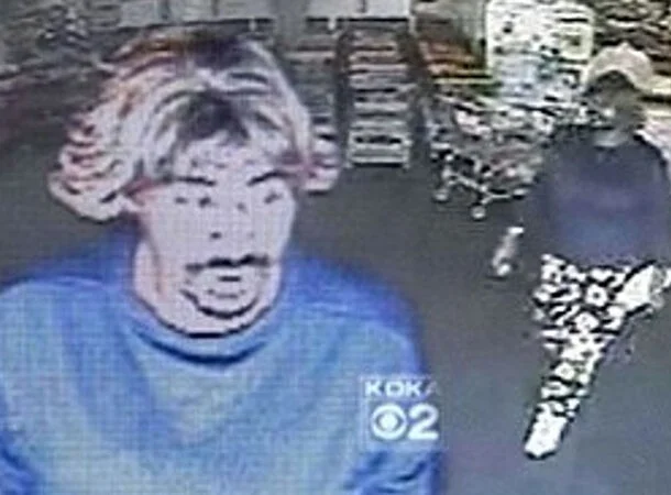 Она состояла из женского светлого парика, накладной груди и каких-то клоунских штанов. Первая проблема заключалась в том, что его лицо с усами и козлиной бородкой было видно на камерах видеонаблюдения. Вторая проблема — в том, что его маскировка была не совсем незаметной. Работник автозаправочной станции позвонил и сообщил, что человек с такой внешностью пытается угнать машину, вскоре после того, как полиция опубликовала его описание.