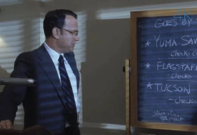 В конце фильма 2002 года "Поймай меня, если сможешь" персонаж Карл Ханратти (Том Хэнкс) пишет на доске. В левом нижнем углу написана фраза "Steven + Tom’s 4th Project" ("4-й проект Стивена + Тома"). На самом деле, это был четвертый фильм Тома Хэнкса и режиссера Стивена Спилберга.