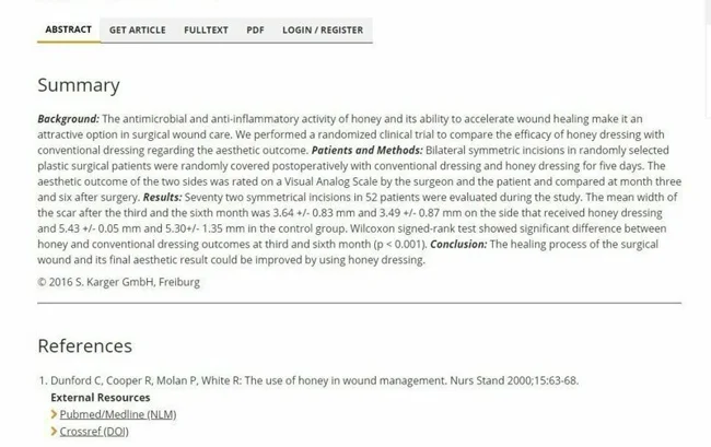 Кстати, этот совет подтвержден клиническими испытаниями. В 2016 году были проведены исследования, которые доказали полезность этого продукта при заживлении ран. Пациентам пластической хирургии на послеоперационные швы наносились повязки с медовой вытяжкой и обычные, используемые в клиниках. В ходе исследования было оценено семьдесят два симметричных разреза у 52 пациентов. Швы с медовой повязкой заживали быстрее и выглядели лучше контрольных.
