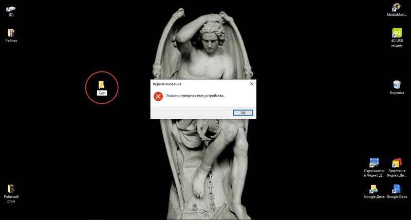 Но на самом деле это не больше, чем легенда. Просто еще до появления Windows, операционная система MS-DOS позволяла осуществлять доступ к некоторым устройствам так же, как и к файлам - по их имени. Поэтому некоторые определенные имена резервировались системой. В частности CON - это сокращенное от CONSOLE (консоль для ввода данных). Есть еще уникальное имя для принтера (PRN), системного динамика (AUX). Сегодня этим функционалом уже никто не пользуется, но в "Винде" они остались в качестве рудимента.