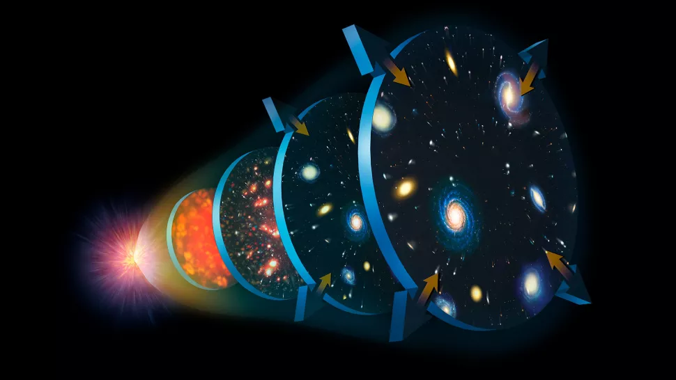 Все начинается с Большого взрыва, который является моментом во времени, а не точкой в пространстве. В частности, это момент начала самого времени, момент, с которого отсчитываются все последующие моменты. Несмотря на свое общеизвестное название, Большой взрыв на самом деле был не взрывом, а скорее периодом, когда Вселенная была чрезвычайно горячей и плотной, а космос начал расширяться во всех направлениях одновременно. Хотя модель Большого взрыва утверждает, что Вселенная была бесконечно малой точкой с бесконечной плотностью, это всего лишь легкий способ сказать, что мы не совсем понимаем, что происходило тогда. Математические бесконечности не имеют смысла в уравнениях физики, поэтому Большой взрыв действительно является точкой, в которой наше нынешнее понимание Вселенной рушится.