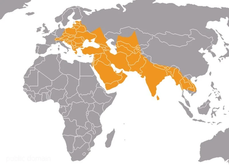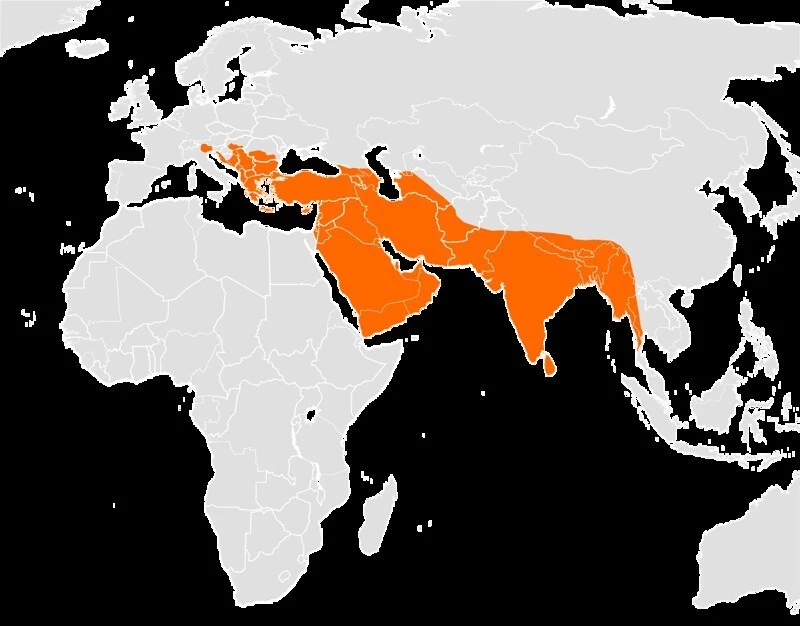 Шакал распространён по всей Индии и в регионах к западу от неё — на Ближнем и Среднем Востоке, в Средней и Малой Азии. В Европе середины XX века он встречался лишь на Балканах: в Греции, Албании, Болгарии и Югославии. Зверь был настолько редким, что в Албании и Сербии, а с 1962 года и в Болгарии охота на этот вид была полностью запрещена.