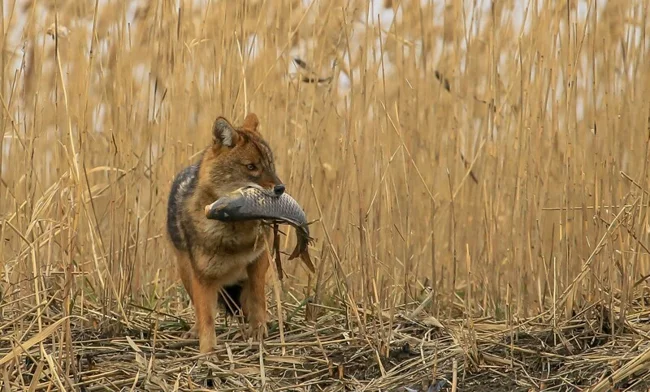 - Шакал отлично плавает и порой ловит рыбу на мелководье.