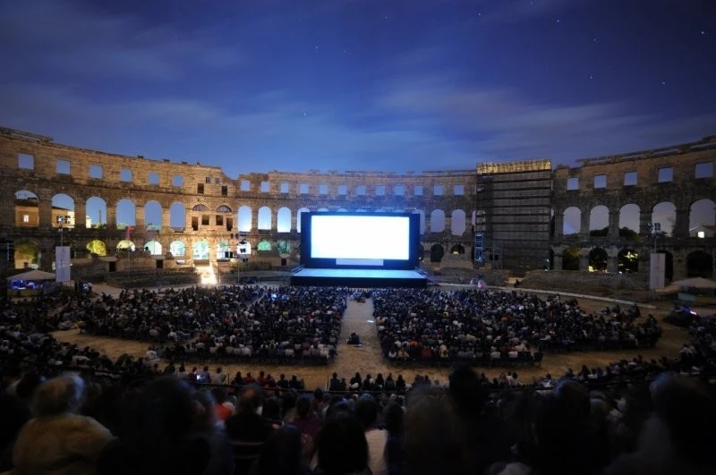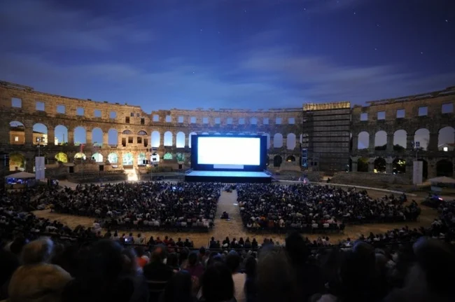 Кинотеатром на свежем воздухе уже никого не удивить, однако посмотреть фильм в древнеримском амфитеатре Пулы – совсем другое дело. Это место идеально подошло бы для просмотра исторических лент на фоне алого заката.