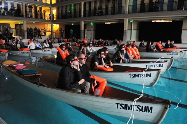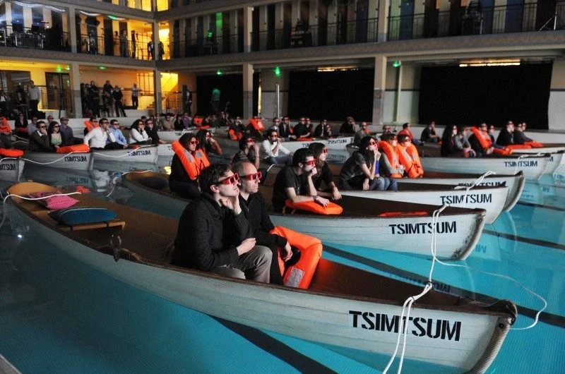 Ещё один кинотеатр, расположенный в столице Франции - The Movie Theater. Здесь вы не встретите ни кресел, ни кроватей. Вместо них зрительские места вам заменят лодки, плавающие в большом бассейне. Правда, непонятно, что делать, если посреди просмотра фильма вдруг захочется в туалет.