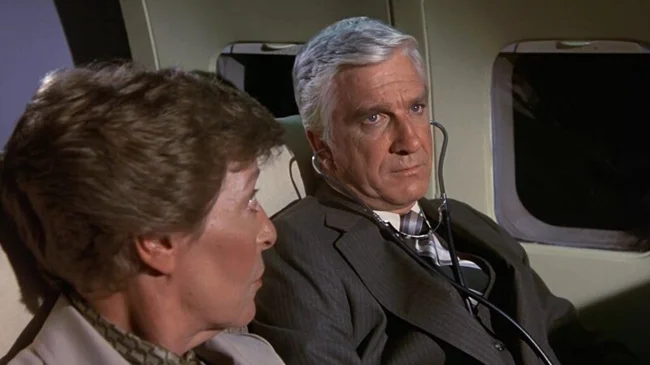 Пародия на фильмы-катастрофы, открывашя миру комедийный талант Лесли Нилсьена. Читайте по ссылке интервью с режиссёром "Аэроплана" Дэвидом Цукером.