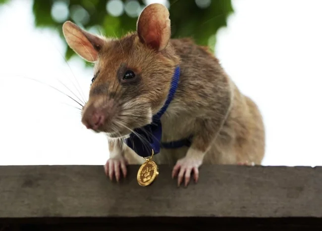 На днях стало известно о смерти сумчатой крысы по кличке Магава. Её не только наградили золотой медалью, но и признали настоящим героем Камбоджи. Ведь на счету грызуна 71 обнаруженная мина и 38 неразорвавшихся боеприпасов.