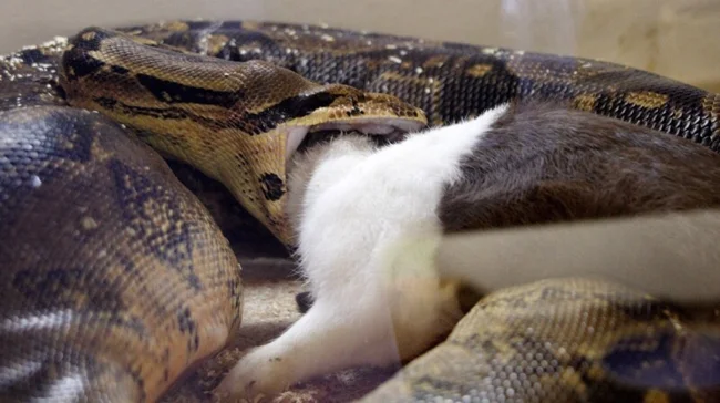 - Питоны способны долго переваривать свою пищу, длительность зависит от температурных условий – чем теплее, тем быстрее это происходит. При 18° С питон переваривает кролика за две недели, а при 28°С – всего за 3-5 дней. В период размножения питоны не едят: голодовка у самцов длится до пяти месяцев, у самок – до семи.