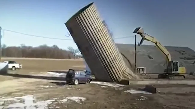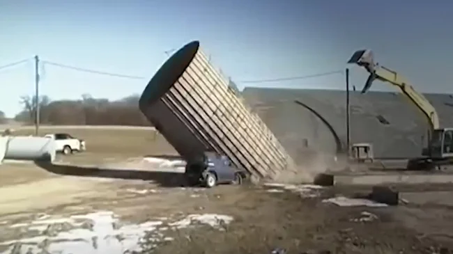 Силосная башня упала на машину