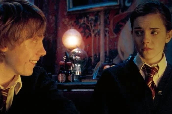 Сцена, где Гарри, Рон и Гермиона обсуждают поцелуй Гарри с Чжоу, заканчивается искренним смехом актеров. По словам режиссера Дэвида Йейтса, актеры никак не могли перестать хихикать, а у Руперта Грина (Рона) в принципе была репутация «запарывателя дублей». В результате приходилось снимать очень много дублей, но не для этой сцены — тут смех сыграл на руку, добавив атмосферы типичной подростковой неловкости.