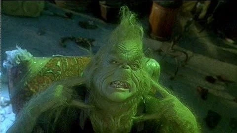 По сценарию Джим Керри должен был провалить трюк с выдергиванием скатерти, но, как назло, оказался слишком талантливым, поэтому Гринч потом возвращается в кадр и сам скидывает всю посуду со стола.