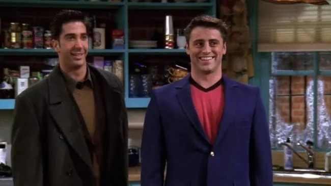 И раз уж мы заговорили о «Друзьях»: в другой серии Чендлер пытается подшутить над прикидом Джоуи, но вместо шутки «Дональд Трамп просит вернуть его синий пиджак» у него получается «Дональд Трамп просит сделать его синий пиджак черным» ("Donald Trump wants his blue blazer black"; black вместо back). Однако вместо того, чтобы переснять дубль, актеры остаются в образах и начинают подкалывать Чендлера.