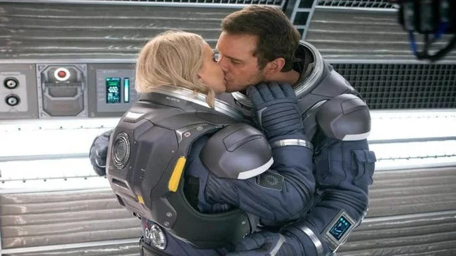 В «Пассажирах» Дженнифер Лоуренс и Крис Пратт не ожидали, что громоздкие скафандры помешают первому поцелую их персонажей, но посмеялись над этим недочетом, и это добавило сцене шарма.