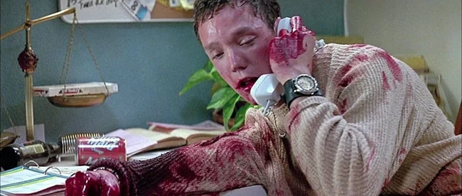 В сцене ближе к концу фильма Билли швырнул в Стью телефон случайно — трубка прилипла к руке актера Скита Ульриха из-за слишком липкой фальшивой крови. Но Мэттью Лиллард (Стью) не растерялся и подыграл коллеге, крикнув в ответ: «Ты меня, б****, телефоном ударил, у****!».