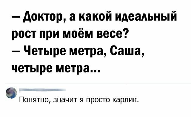 Диалоги о весе (18 фото) 27 октября 2019 0 Категория: смешное Диалоги о весе, а точнее - о лишнем весе Поделитесь новостью с друзьями: Facebook Twitter Pinterest +1