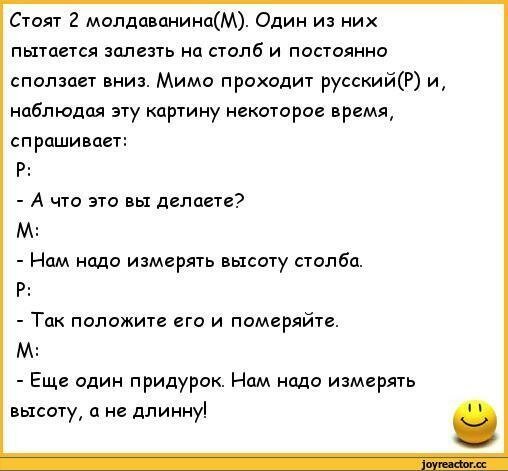 Подборка анекдотов и приколов на тему жителей Молдавии (15 фото) 14 ноября 2019 0 Категория: смешное Подборка беззлобных анекдотов и картинок на тему уроженцев Молдавии Поделитесь новостью с друзьями: Facebook Twitter Pinterest -3