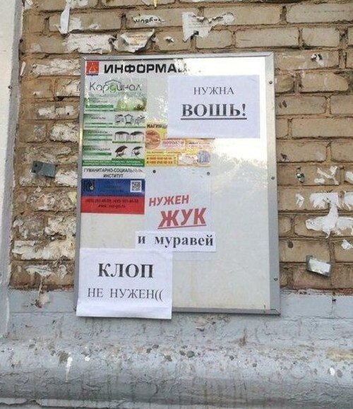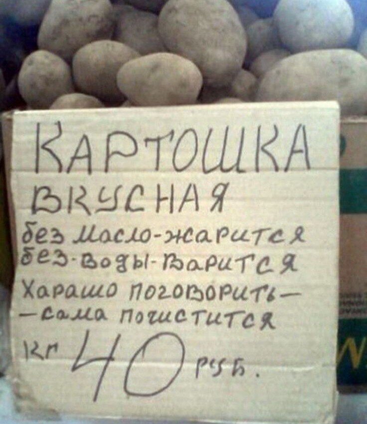 35 смешных объявлений, которые можно увидеть только на рынках (35 фото) 17 января 2020 0 Категория: смешное На российских рынках можно увидеть самые неожиданные объявления. Это вам не супермаркет с его отпечатанными на принтере ценниками. Это территория народного творчества — смешного и беспощадного. Поделитесь новостью с друзьями: Facebook Twitter Pinterest +2