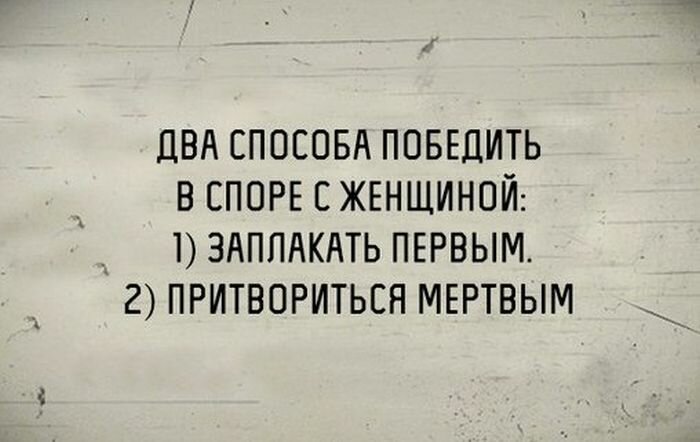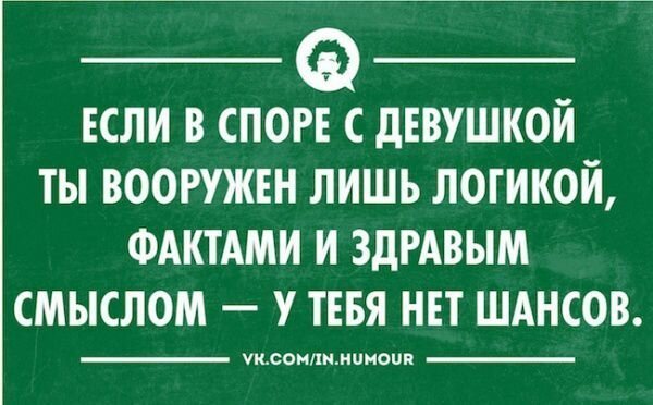 Народная мудрость о споре с женщинами (18 фото) 9 апреля 2020 0 Категория: смешное Прикольные, беззлобные изречения и мысли о споре с прекрасной половиной человечства. Поделитесь новостью с друзьями: Facebook Twitter Pinterest +1