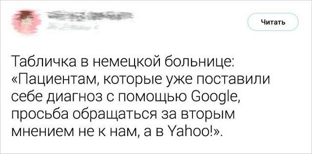 Юмор от врачей (9 фото) 30 мая 2020 0 Категория: смешное Чувство юмора у них, конечно, немного своеобразное Поделитесь новостью с друзьями: Facebook Twitter Pinterest 0