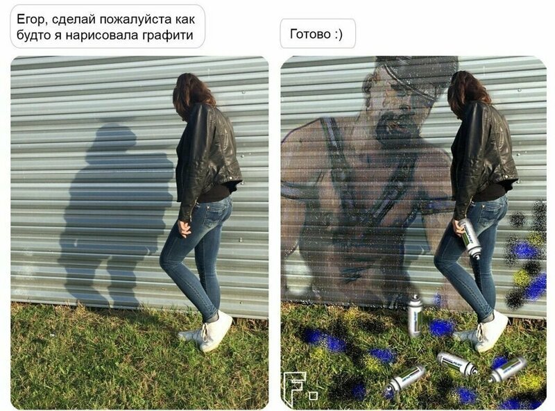 25 блестящих примеров, как мастер фотошопа остроумно троллит людей (25 фото) 26 июня 2020 0 Категория: смешное Блестящий фотошопер и остроумный тролль 80 уровня готов выполнить просьбу любого желающего. Правда, делает он это буквально, слово в слово, как попросили. За его творчеством в аккаунте инстаграм следит уже 400 тысяч человек. Поделитесь новостью с друзьями: Facebook Twitter Pinterest 0