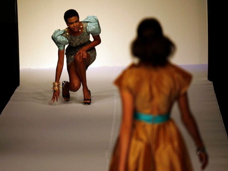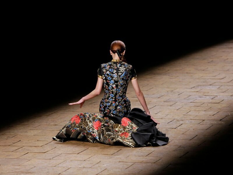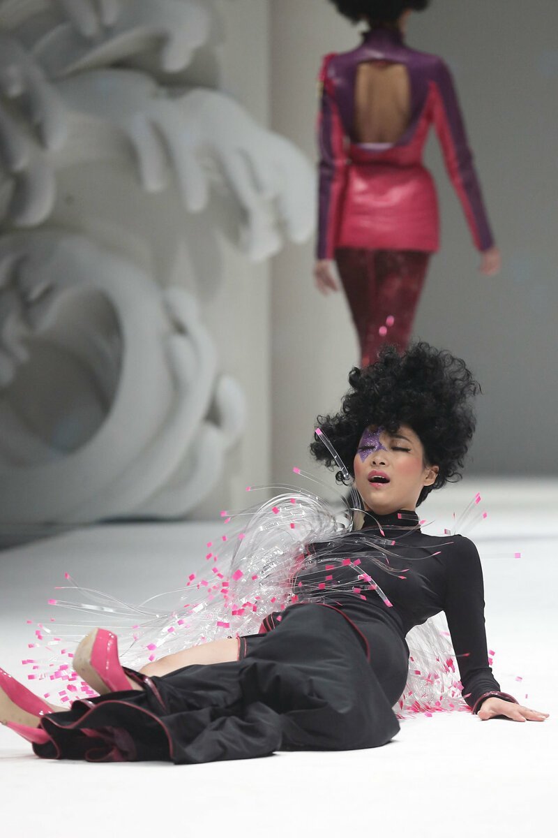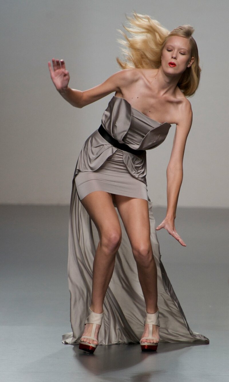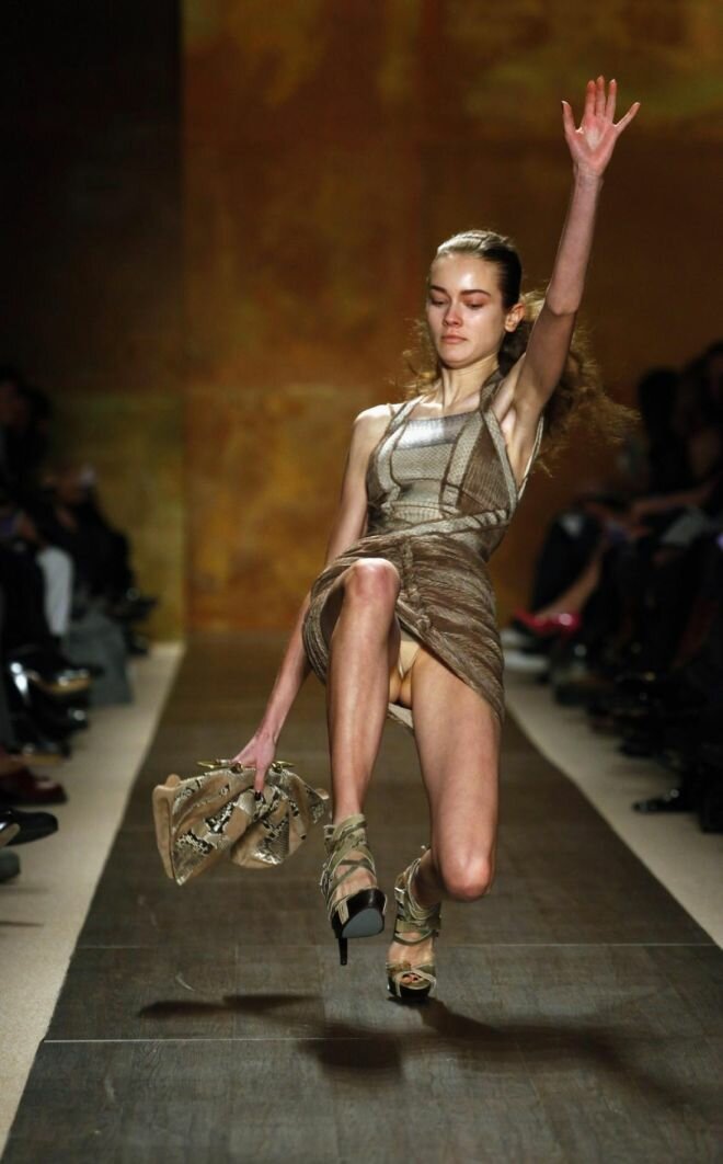 Фантазии модельеров нет предела, а потому они одевают девушек в экстравагантные наряды, в которых не то что ходить - стоять сложно. Потому неудивительно, что с завидной частотой модели исполняют на подиуме пируэты, схожие с акробатическими номерами в цирке.