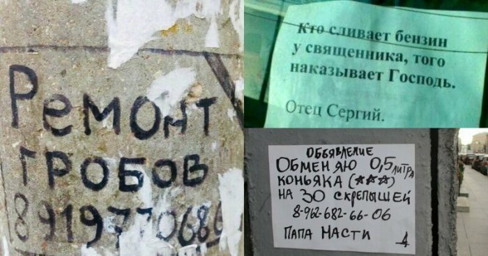 Маразм крепчал (14 фото) 4 июля 2020 0 Категория: смешное Абсурдные, маразматичные объявления, комментарии Поделитесь новостью с друзьями: Facebook Twitter Pinterest +1