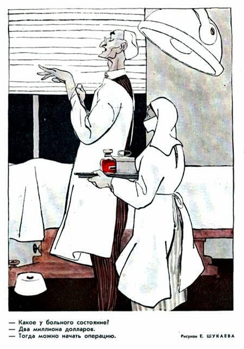 Подборка советских иллюстраций о капиталистической системе здравоохранения (6 фото) 26 августа 2020 0 Категория: ностальгия Ущербность «рыночной» медицины, показавшей свою непригодность и несостоятельность при столкновении с СОVID 2019, очевидна. Пандемия наглядно показала насколько заслуженной была советская критика западного здравоохранения. Поделитесь новостью с друзьями: Facebook Twitter Pinterest +1