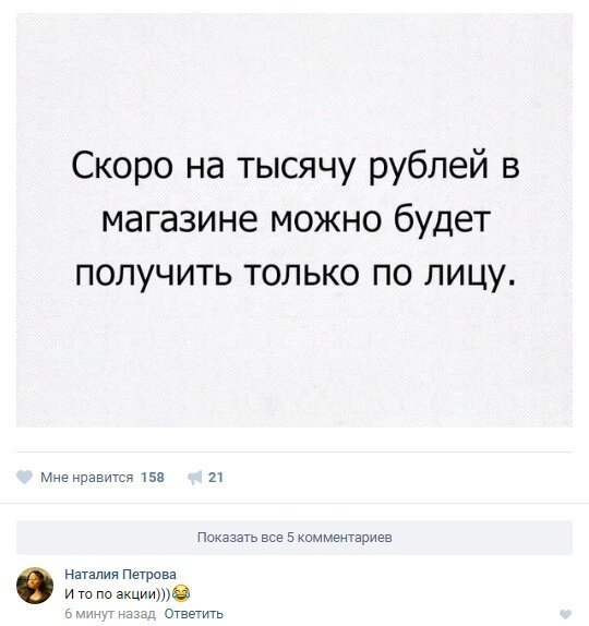 Рост цен на коммуналку и проезд — третий всадник апокалипсиса 2020-го года (16 фото) 18 сентября 2020 0 Категория: смешное Первые два - это коронавирус и падение курса рубля. Без разговорчиков! В/на Украине Есть в этом доля правды Если задолжали по коммунальным платежам. Действуйте как религиозные организации Ахаха, а так это вообще законно? Невероятная щедрость Казалось бы... причём здесь курс рубля Поделитесь новостью с друзьями: Facebook Twitter Pinterest +1