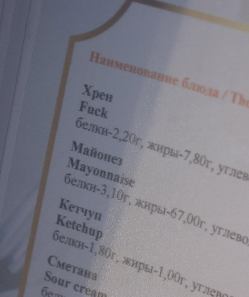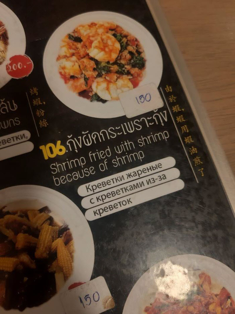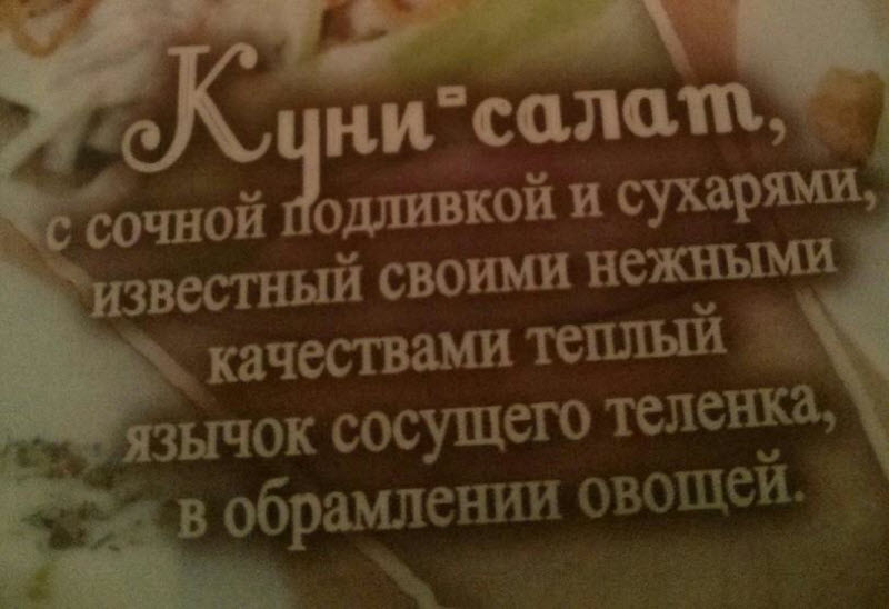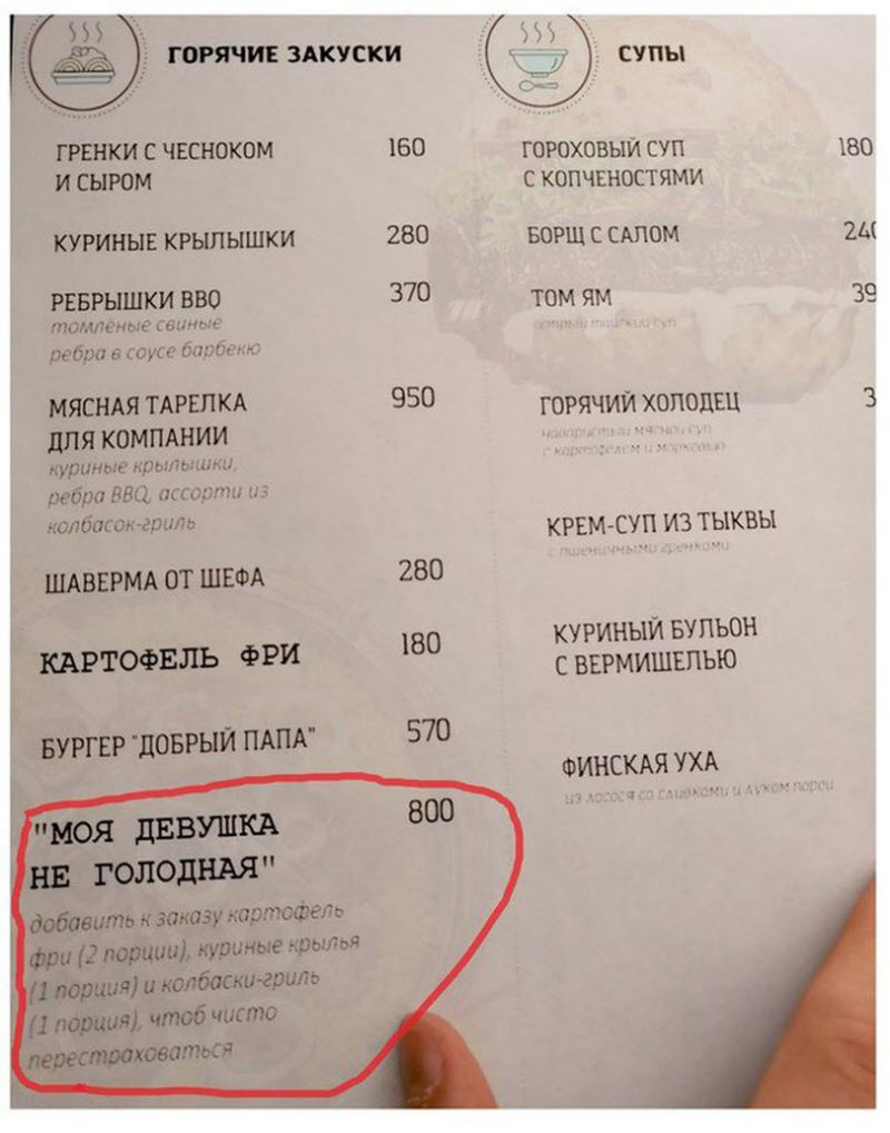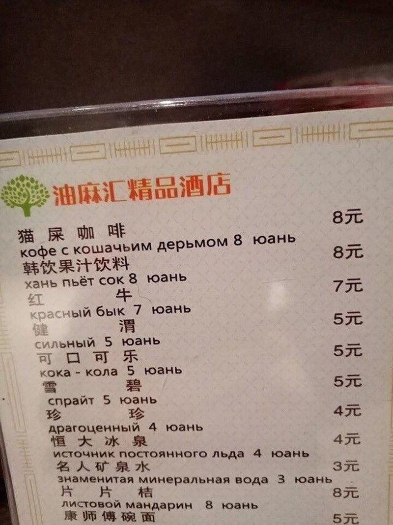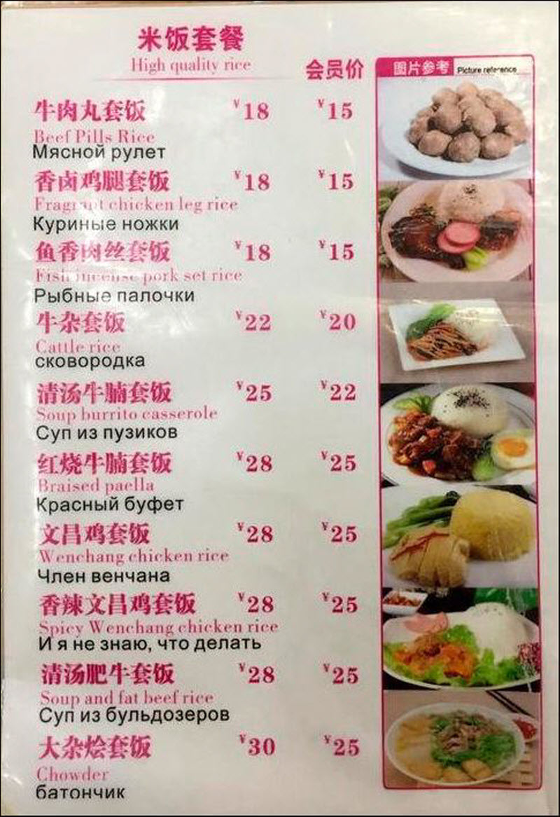 Трудности перевода меню на русский язык (14 фото) 11 января 2021 0 Категория: смешное Поделитесь новостью с друзьями: Facebook Twitter Pinterest 0
