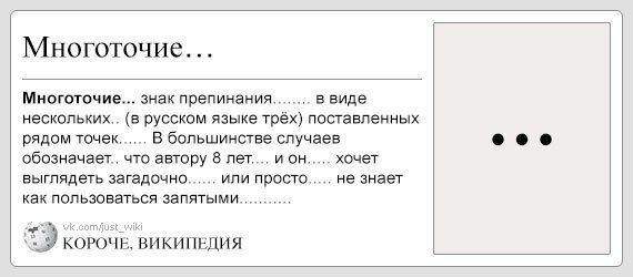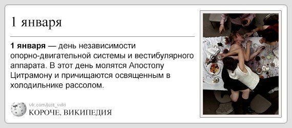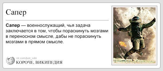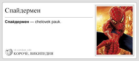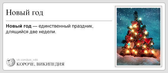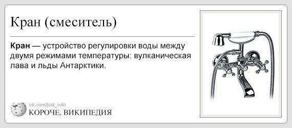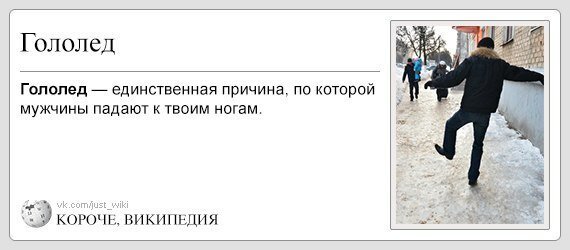 Короче, Википедия (31 фото) 14 марта 2021 0 Категория: смешное Короче, тут одни креативные ребята решили создать альтернативную Википедию. Все так же, как и в самой популярной энциклопедии, — только сухие описания с фактами и датами они заменяют на короткие и в то же время емкие ироничные заметки Поделитесь новостью с друзьями: Facebook Twitter Pinterest 0
