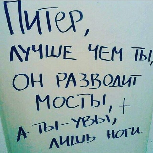 Безумная порция уличной философии (25 фото) 18 марта 2017 0 Категория: смешное Что такого хорошего в уличной философии? На неё не распространяется цензура, поэтому написанное на стене иногда точнее отражает реалии, чем сотни телепередач. Поделитесь новостью с друзьями: Facebook Twitter Pinterest 0