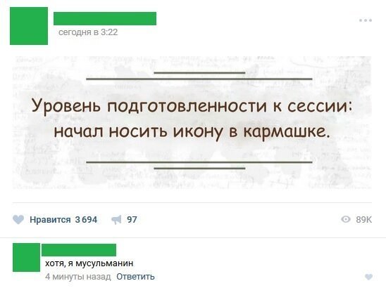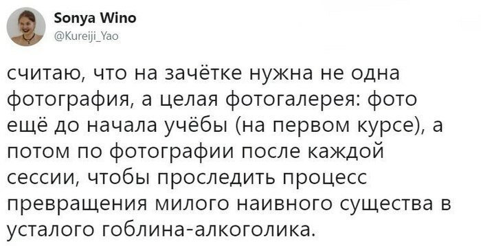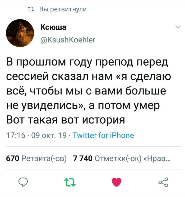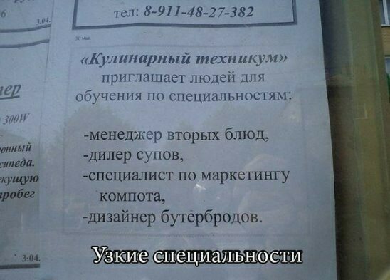 Посвящается всем тем, кто пошёл на пересдачу (15 фото) 24 мая 2021 0 Категория: смешное Получение высшего образования чем-то схоже с ходьбой по канату над пропастью. Очень интересно. Жаль, что не все доходят до конца. Когда препод в теме Комменты жгут! Ахаха, ну хотя бы правду сказала По-настоящему узкая специализация Всё будущее студента мединститута в одной строчке Поделитесь новостью с друзьями: Facebook Twitter Pinterest 0