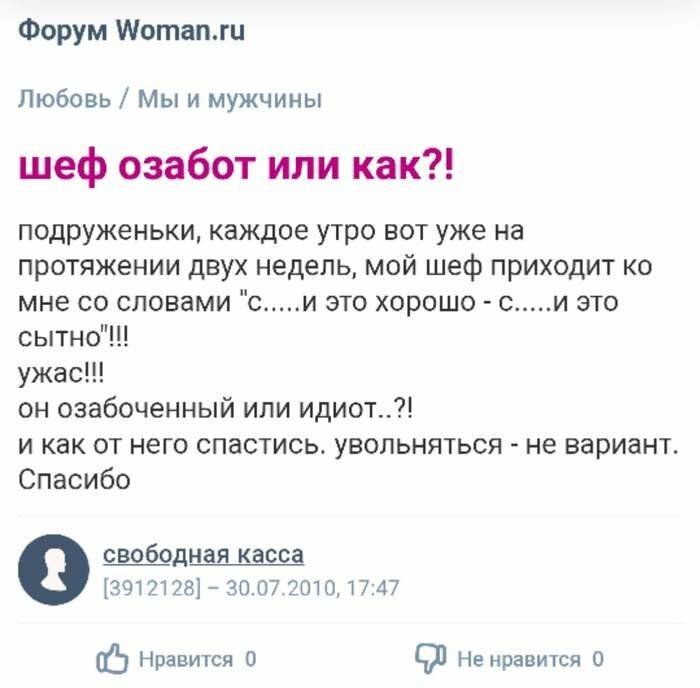 Бабоньки, что за бред вы несете? (19 фото) 1 ноября 2021 0 Категория: смешное Женщины пишут в интернете такое... Это нужно увидеть! Без лишних комментариев! Поделитесь новостью с друзьями: Facebook Twitter Pinterest 0