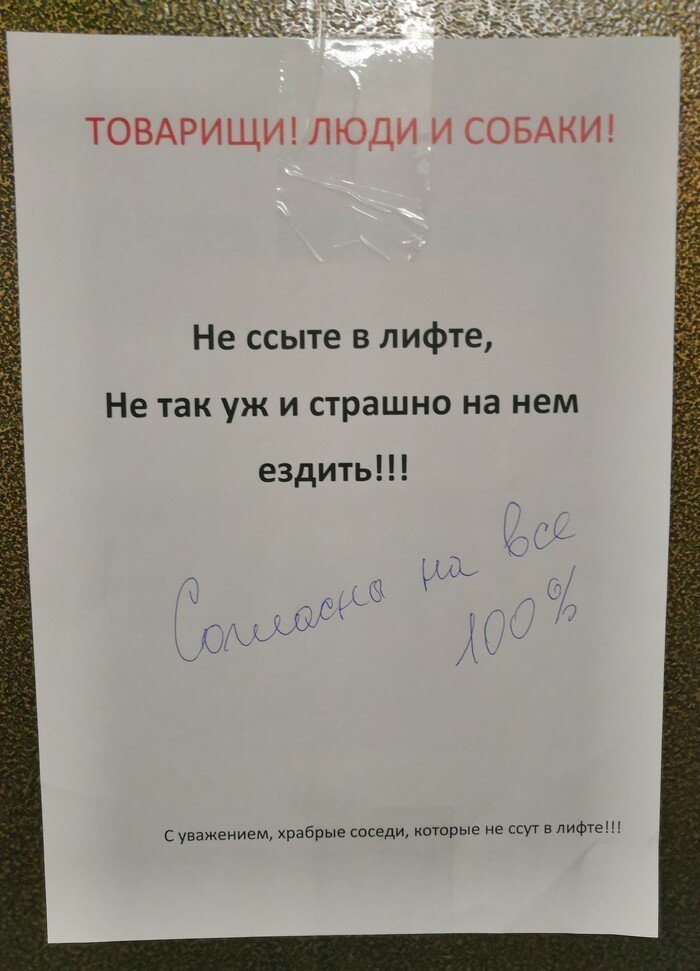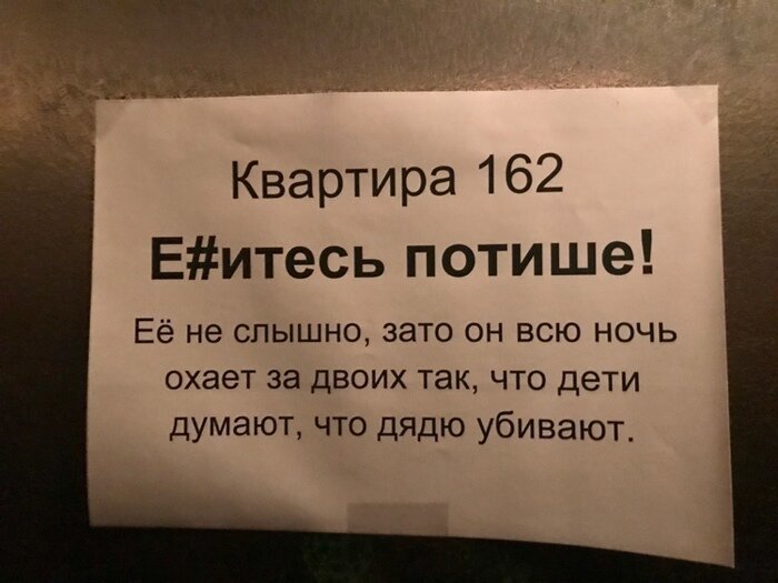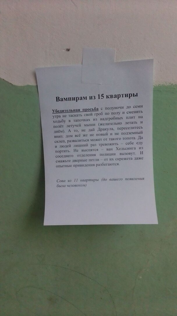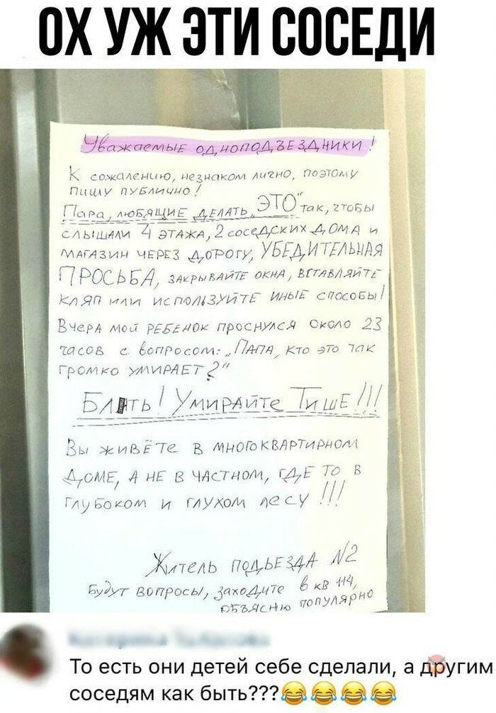 Из серии "подсмотрено": соседи (15 фото) 1 октября 2021 0 Категория: смешное С соседями всегда так: все про всех всё знают, но это не точно. Лифт храбрых соседей Балкон запасливого соседа Вай-Фай сети в многоэтажке Человек-тук-тук существует Детский крик в многоэтажке... С НГ, соседушки! Поделитесь новостью с друзьями: Facebook Twitter Pinterest 0