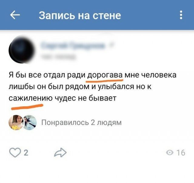 И снова о безграмотности (15 фото) 16 октября 2021 0 Категория: смешное Каждый человек может без проблем изучить правила русского языка - под рукой у каждого есть для этого Интернет. Однако многих устраивает и безграмотность. И именно их фейлы при написании постов и публикаций смогут рассмешить любого. Поделитесь новостью с друзьями: Facebook Twitter Pinterest 0
