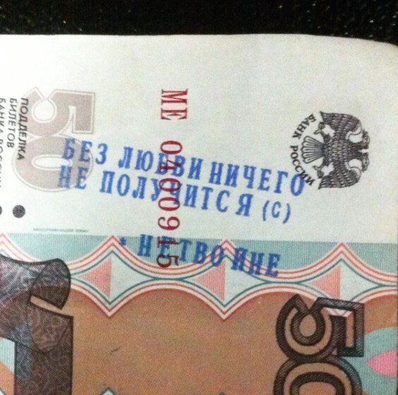 Неожиданные послания, оставленные на деньгах (14 фото) 8 ноября 2021 0 Категория: надписи на картинках Иногда на денежных банкнотах можно найти послания, оставленные кассирами. А порой встречаются фразы, которые оставили бывшие владельцы денег. Поделитесь новостью с друзьями: Facebook Twitter Pinterest 0