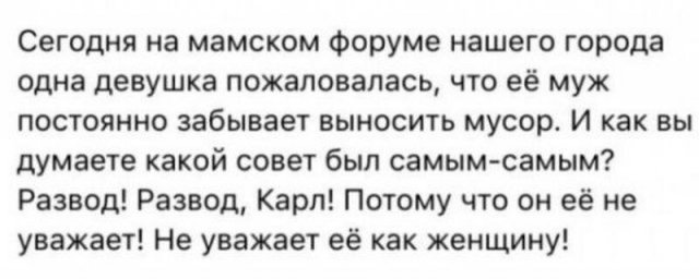 Немного про женскую логику (12 фото) 26 сентября 2021 0 Категория: надписи на картинках Женская логика, как известно, сложная "наука". Понять девушек, увы, получается не всегда. И вот несколько тому доказательств - странные и нелепые мысли, которые дамы пишут в социальных сетях. Поделитесь новостью с друзьями: Facebook Twitter Pinterest 0