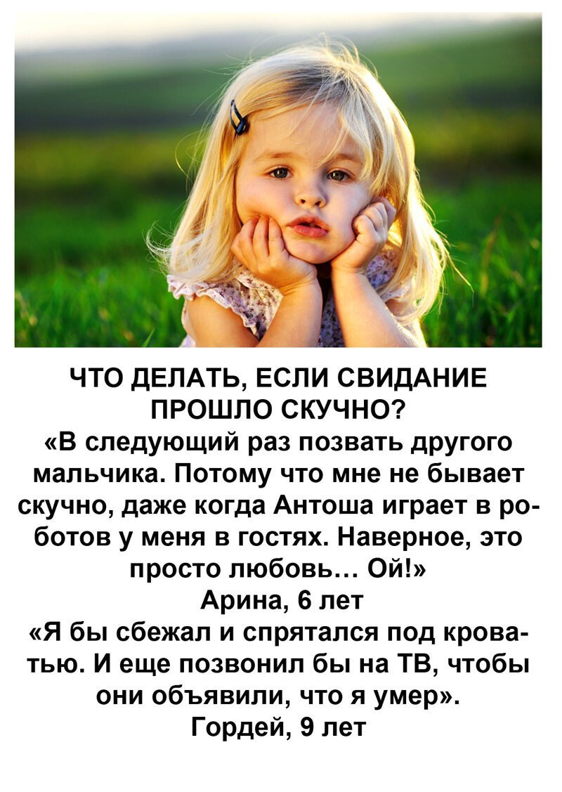 О любви! (20 фото) 8 января 2021 0 Категория: дети Смешные высказывания детей о любви и отношениях Поделитесь новостью с друзьями: Facebook Twitter Pinterest +2
