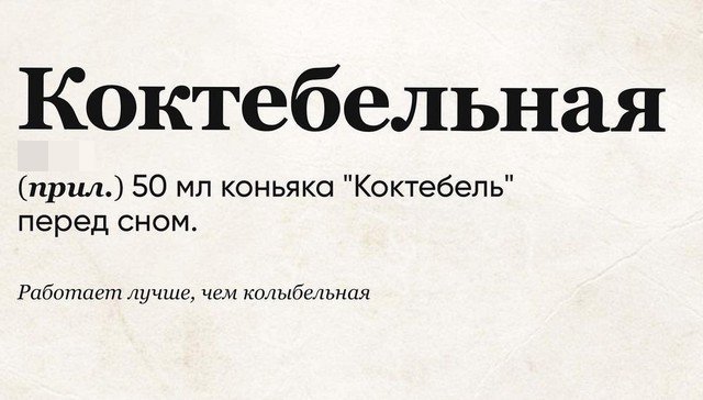 Новые значения всем привычных слов (15 фото) 12 октября 2021 0 Категория: смешное Проект "слово дня" продолжает захватывать ума и сердца людей. Публика с удовольствием придумывает новые описания и приколы к известным словам, а затем публикует это в социальных сетях. Вот несколько забавных примеров. Поделитесь новостью с друзьями: Facebook Twitter Pinterest +1