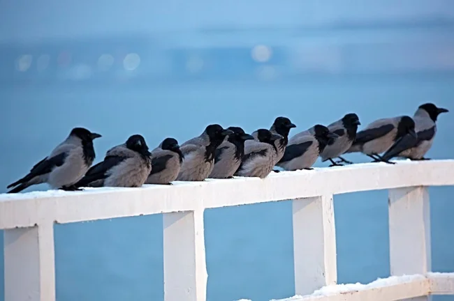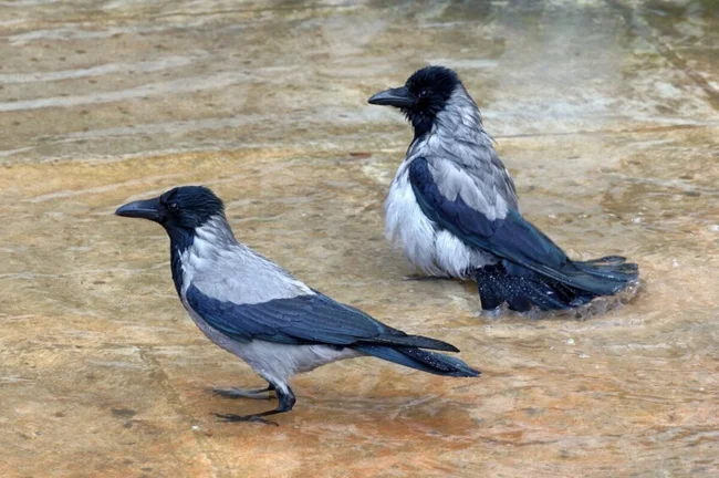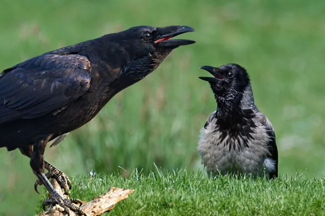 Within a couple of months after the crow’s “wife” gave birth to offspring, the young reach the size of their parents. And in size, and in weight, and in wingspan. They will not linger in the family nest! They will run away as soon as they consider themselves completely self-sufficient. Hoodie crow chicks remain small-caliber chicks much longer. And even when they are already able to obtain provisions for themselves, they prefer to remain dependent on their parents.