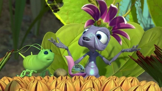 13. In the cartoon “The Adventures of Flick,” the queen ant carries an aphid with her. In life, ants protect aphids and form a symbiosis with them