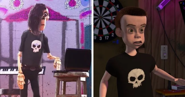 9. In the cartoon “The Mystery of Coco” one of the skeletons wears a T-shirt with a skull - the same one Sid had from “Toy Story”