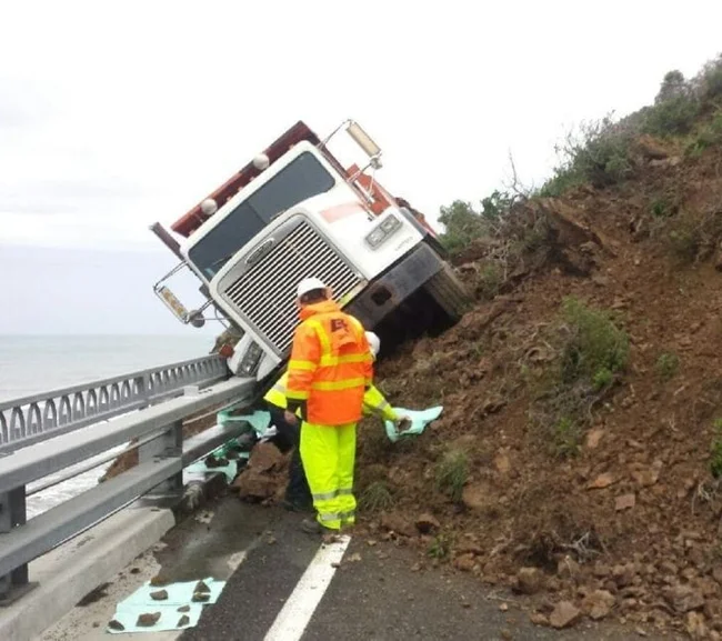 There was a landslide near the city, and it was a miracle that the car did not fall into the Pacific Ocean