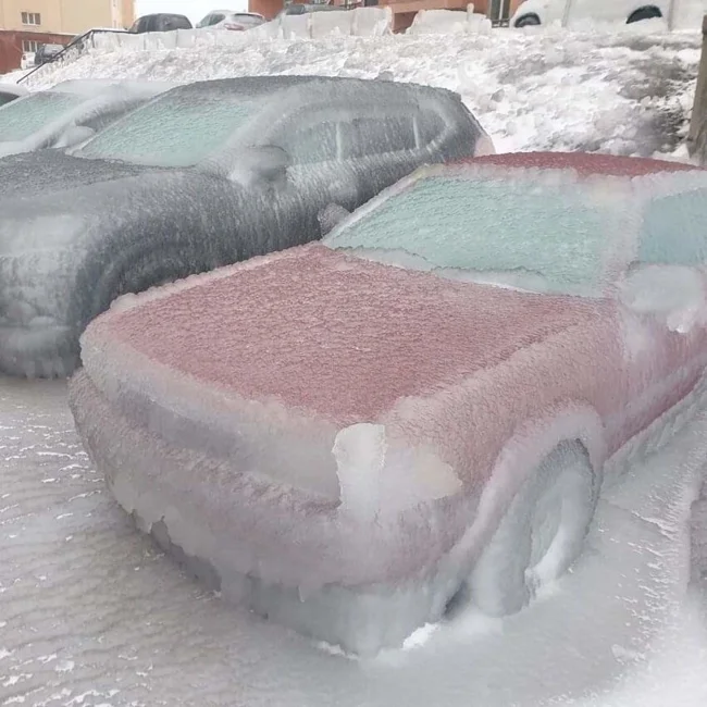 Cars after freezing rain in Vladivostok
