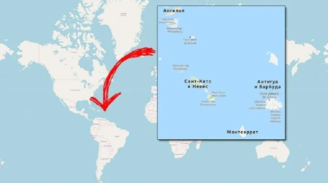We set off for the Caribbean, and another small country awaits us there - St. Kitts and Nevis. Full name: Federation of Saint Christopher and Nevis. The area of the state is 261 square kilometers, about fifty thousand people live there.
