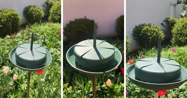 Wasp trap. Sweet liquid and dishwashing detergent go to the bottom. Stinging insects arrive, soap reduces surface tension and covers them. They die/drown.