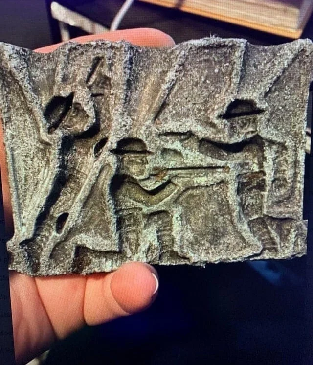 Mold for casting lead soldiers.