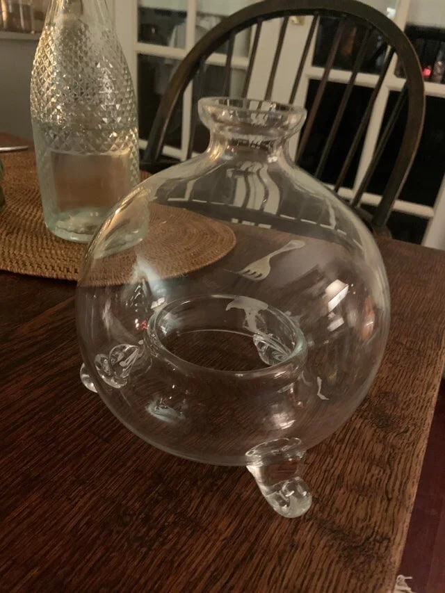 Found while cleaning the estate. At first glance it seems that this is for storing liquid, but there is a large hole at the bottom